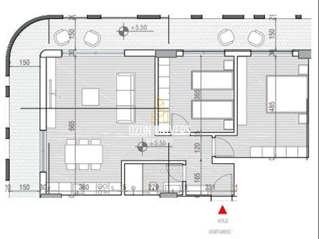 • Verandë e gjerë me dalje nga të gjitha ambientet