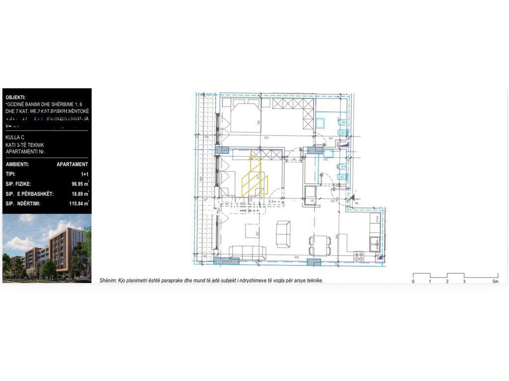 • Sipërfaqe Totale (Bruto): 115.84 m²